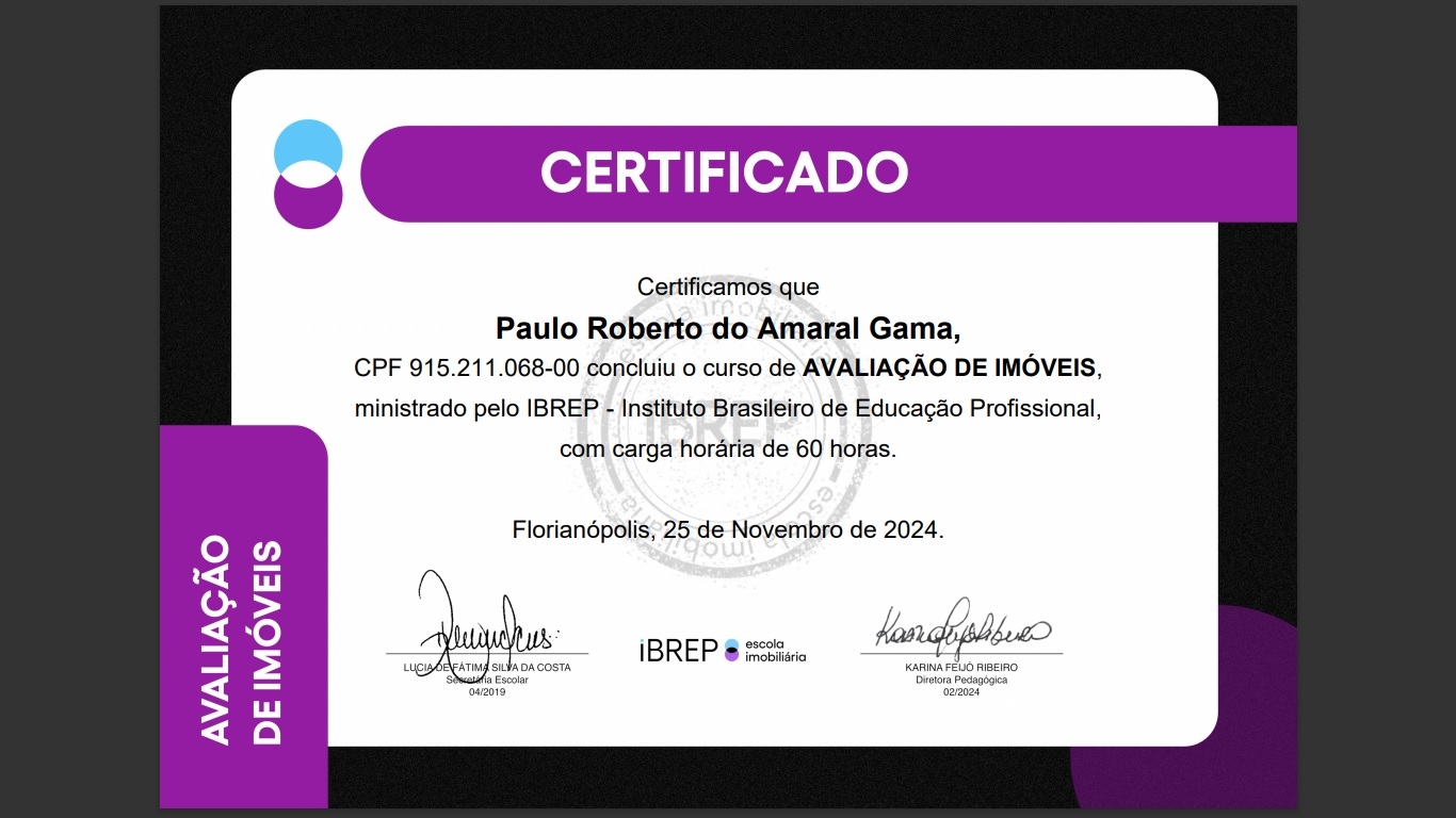 A finalidade da avaliação mercadológica é a determinação do valor de mercado do imóvel avaliando para fins de regularização e registro em cartório. Este documento estará em conformidade com o disposto no art. 3º da Lei 6.530 de 12 de maio de 1978 (D.O.U de 15/05/1978), que regulamenta a profissão de Corretor de Imóveis, e com as Resoluções do Conselho Federal de Corretores de Imóveis (COFECI) nºs 957, de 22 de maio de 2006 (D.O.U. De 26/06/2006), e 1.066, de 22 de novembro de 2007 (D.O.U. De 29/11/2007), que dispõem sobre a competência do Corretor de Imóveis para a elaboração de Parecer Técnico de Avaliação Mercadológica e regulamentam a sua forma de elaboração.